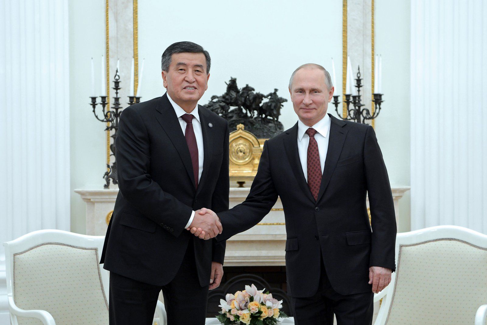 Президент Сооронбай Жээнбековнинг Россия давлат раҳбари Владимир Путин билан ноябрда Россияга бўлган сафари вақтидаги учрашуви. Сурат: Қирғизистон ҳукуматининг матбуот хизмати.
