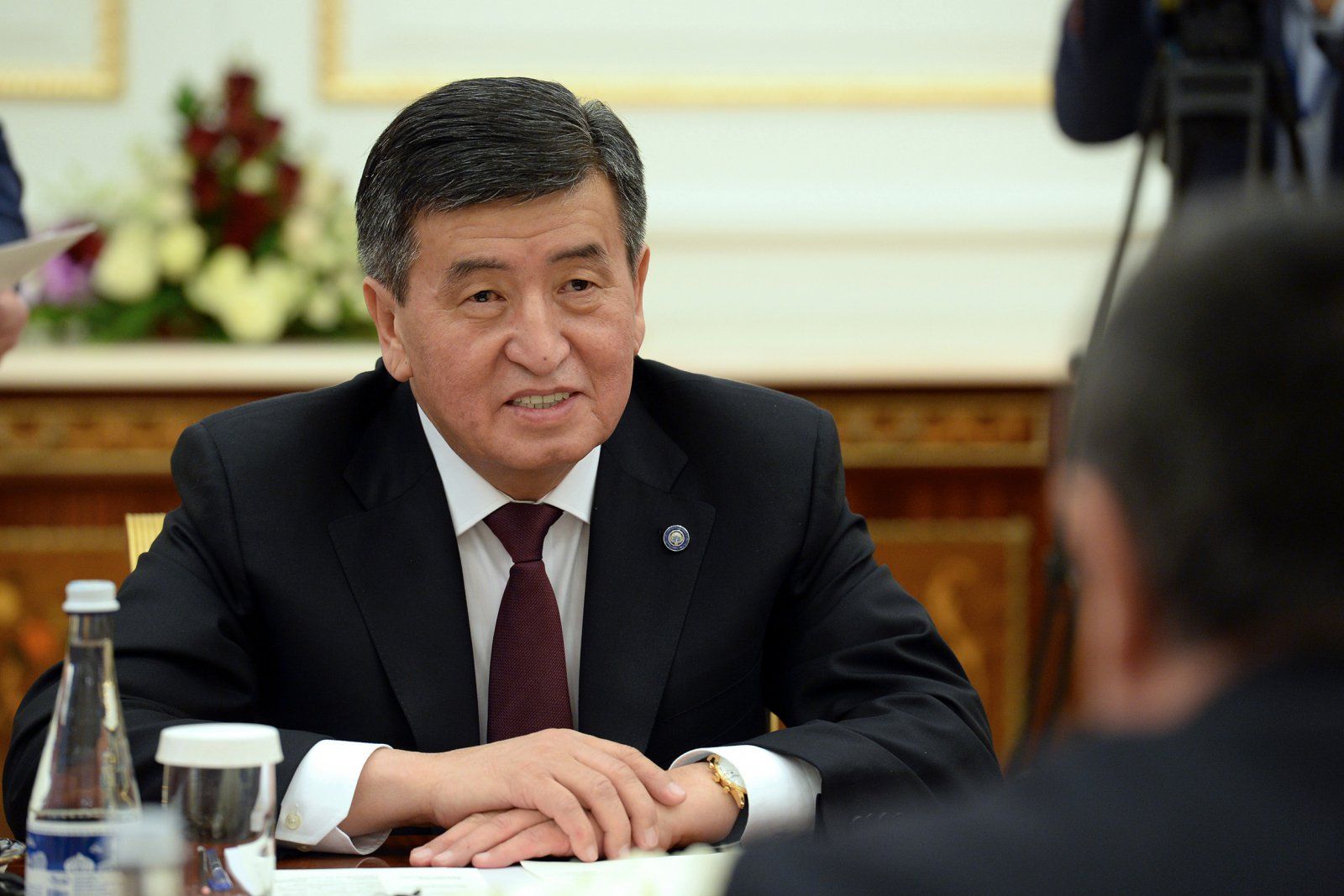 Премьер-министр Сооронбай Жээнбеков Қирғизистон билан Ўзбекистон ҳамкорлиги бўйича ҳукуматлар аро комиссия йиғинида. 2017-йилнинг августи. Сурат: Қирғизистон ҳукуматининг матбуот хизмати.